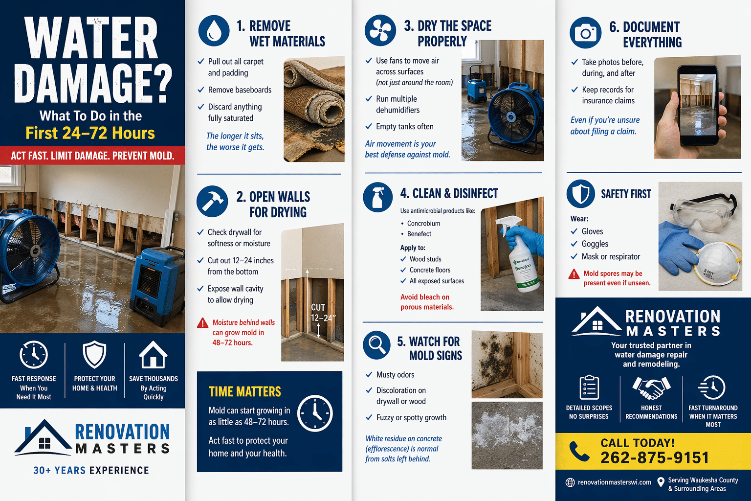 Even if the wall surface feels dry, trapped moisture behind it can grow mold within 48–72 hours.